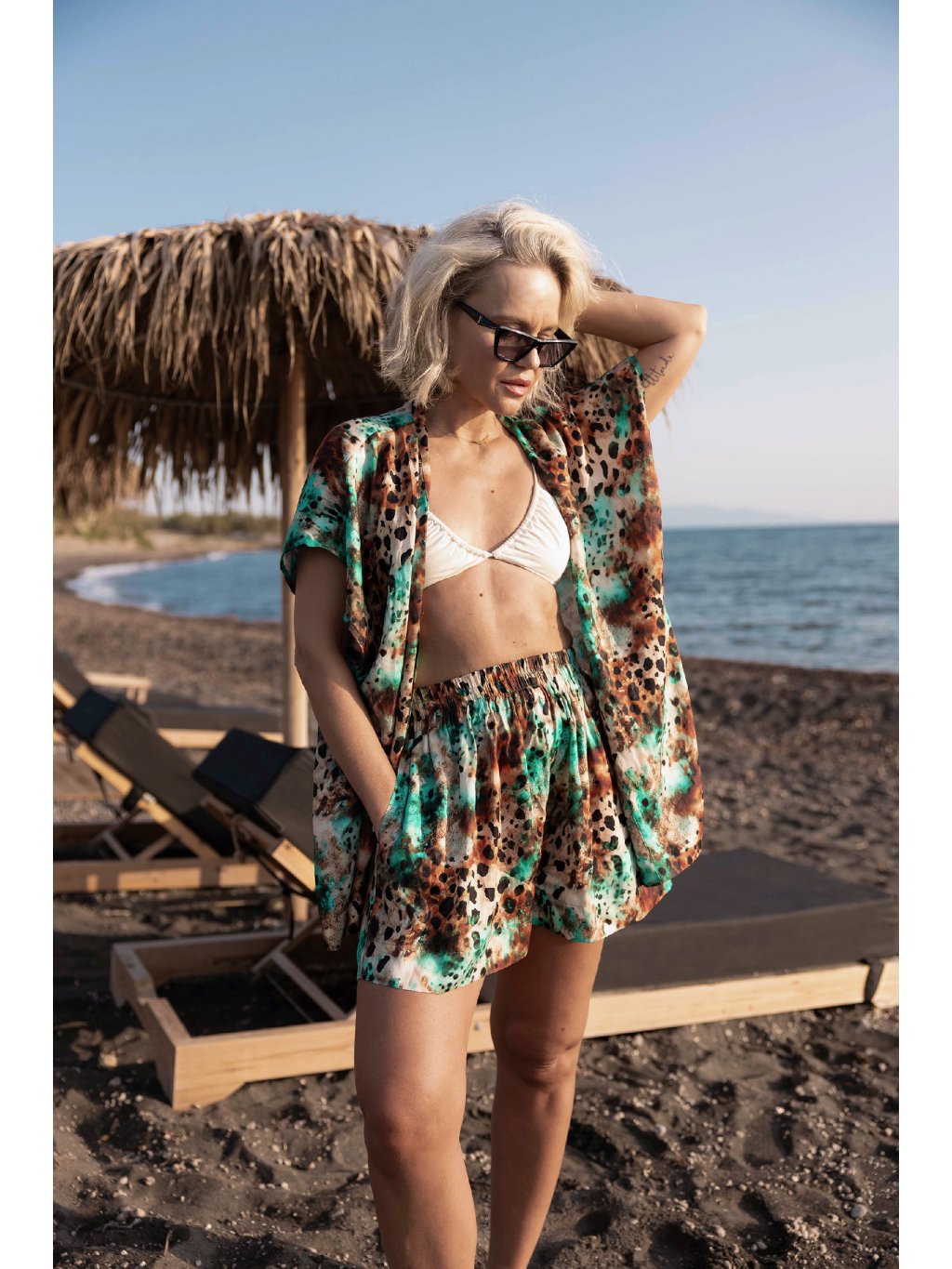 Ľahké, voľné šortky so zvýšeným pásom, ktoré ti doprajú maximálne pohodlie bez kompromisov v štýle. Ich hravý strih a unikátny vzor v sebe nesie energiu divokosti aj harmóniu mora.